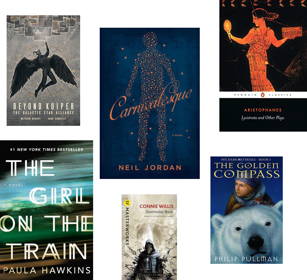 I didn’t really progress this week with the Aristophanes Plays, The Golden Compass or Doomsday Book. I had to finish an ARC before and the rest of my focus has been on the Halloween Bingo books. For Halloween Bingo I am reading Carnivalesque for the Creepy Carnivals, and The Girl on the Train for Psych. For the former I found the writing in the beginning very awkward and all the characters in the latter are annoying me. My final new read is Beyond Kuiper, and while I don’t usually get discouraged from reviews before reading, this ARC has an average rating of 1 star on GoodReads (admittedly only three votes, but still). I have only just started though.